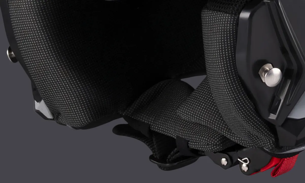 Incluye deflector nasal integrado y cubrebarbilla para mejorar el confort y la protección frente al viento. Además, incorpora preinstalación para sistema de comunicación AX-B01 RIDER SYNC, permitiendo su instalación desde el primer momento.